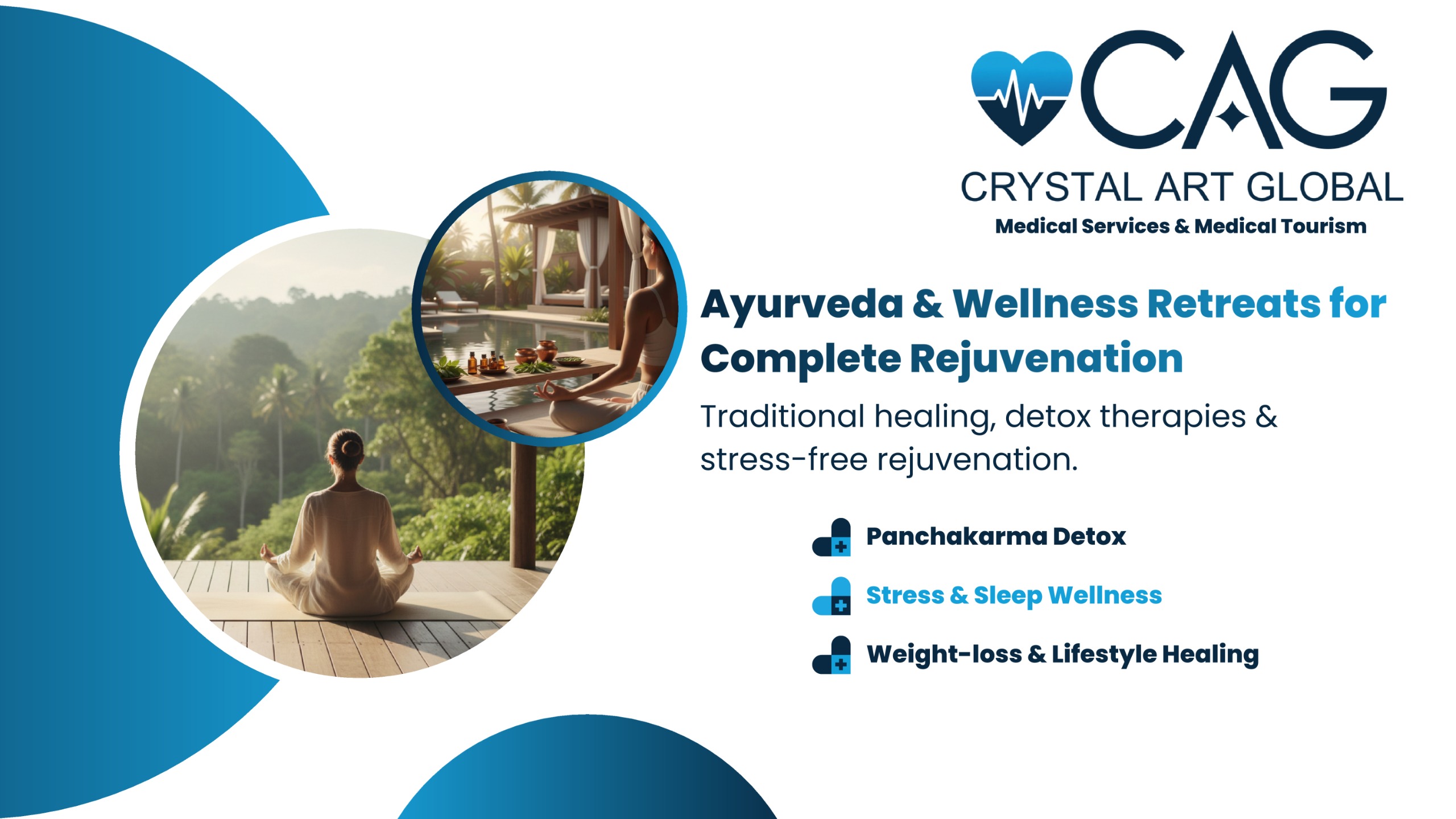 Healing retreats, Panchakarma, weight-loss and lifestyle programs, stress and mental wellness escapes curated for global clients.